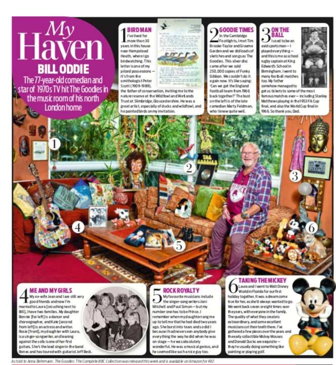 In the Cambridge Footlights, I met Tim Brooke-Taylor and Graeme Garden and we did loads of sketches and songs as The Goodies. This silver disc came after we sold 250,000 records of Funky Gibbon. We couldn’t do it again now. It’s like someone saying, ‘could we get the football team from 1966 back together?’ The bust on the left is of the late comedian Marty Feldman, who I knew quite well.